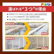 用途:(屋内外区分:屋内外用)扉、フェンス、シャッター、パイプ、機械器具、農機具などの屋内外の鉄部・鉄製品ガルバリウム鋼板のサイディング、トタンべい、アルミ建材、ステンレス製品。