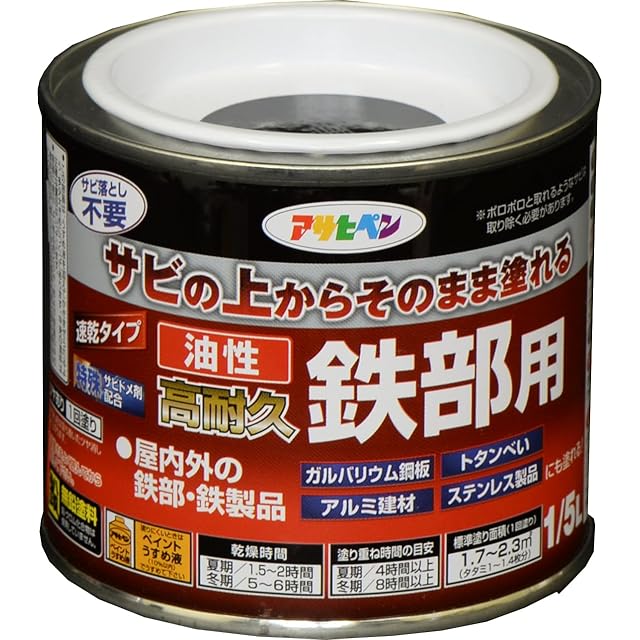 商品名:アサヒペン 塗料 ペンキ 油性高耐久鉄部用 1/5L 黒 油性 サビの上からそのまま塗れる ツヤあり 1回塗り 高密着性 耐候性 日本製