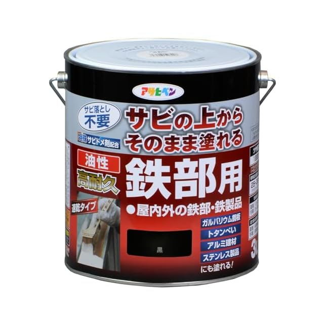 商品名:アサヒペン 塗料 ペンキ 油性高耐久鉄部用 3L 黒 油性 サビの上からそのまま塗れる ツヤあり 1回塗り 高密着性 耐候性 日本製