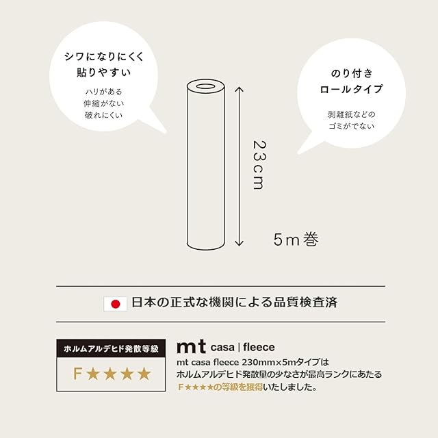 【商品詳細】 サイズ:幅230mm×5m / 材質:フリース素材 / 色:ベージュ / ブランド:カモ井加工紙 / mt masking tape