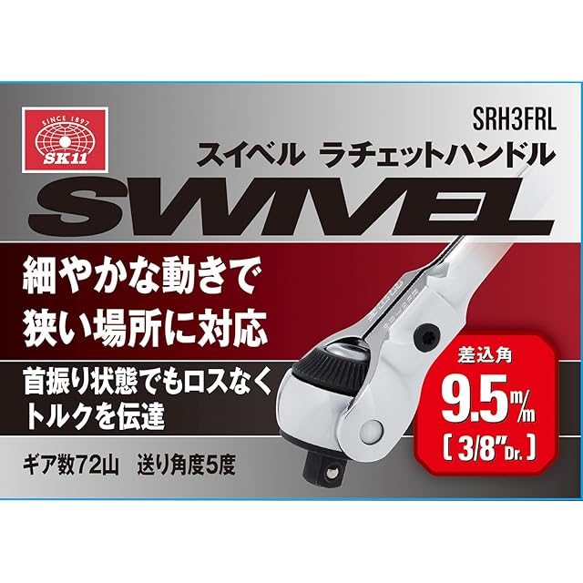 商品名:SK11(エスケー11) スイベルラチェットハンドル 差込角 9.5mm 3/8インチ SRH3FRL 72山ギア 全長280mm