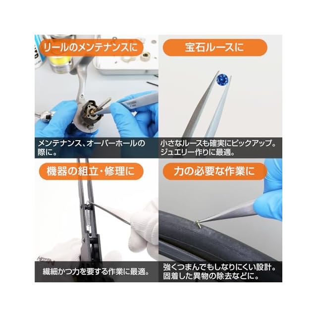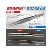 熱処理を施した強靭な素材で、強くつまんでもしなりにくい。対象物を確実につかみます。歪みのない高精度な先端部。ピタリと合った先端は、掴んだものを放しません。