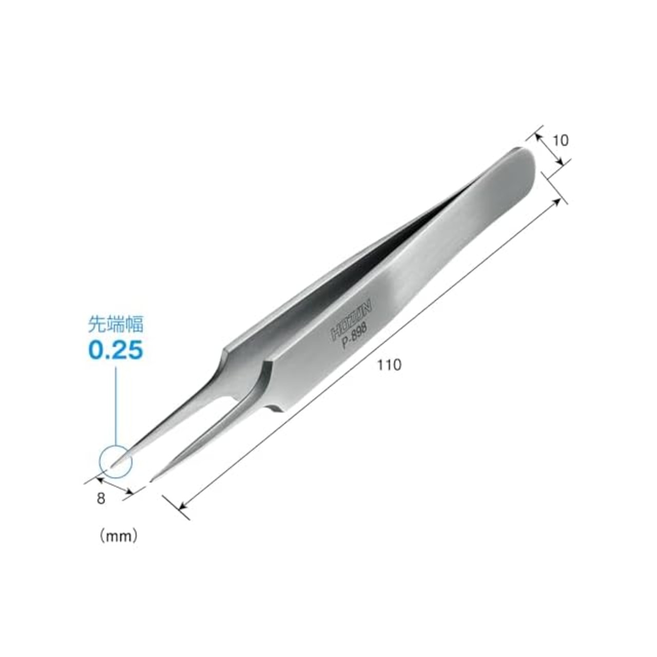 商品名:ホーザン(HOZAN) ピンセット(強力型) ツイーザー 厚肉、高耐久仕様 材質ステンレス 全長110mm 先端幅0.25mm P-898