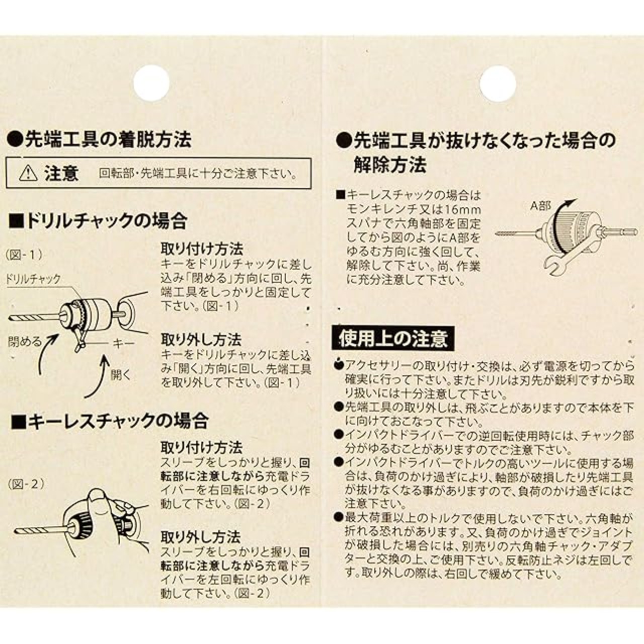 用途:充電ドリルドライバー・インパクトドライバーに取付けて、各種先端工具を把握