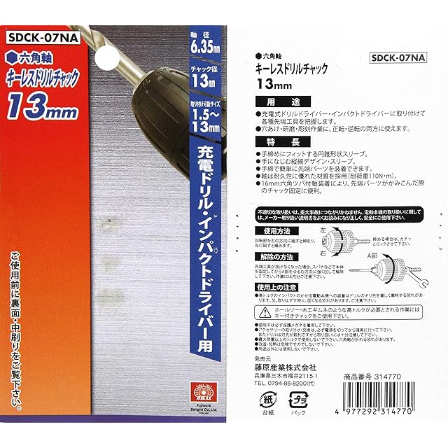 商品名:SK11(エスケー11) キーレスドリルチャック 13mm SDCK-07NA ブラック