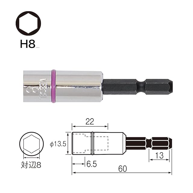 対辺:8mm、外径:直径13.5mm、全長:60mm