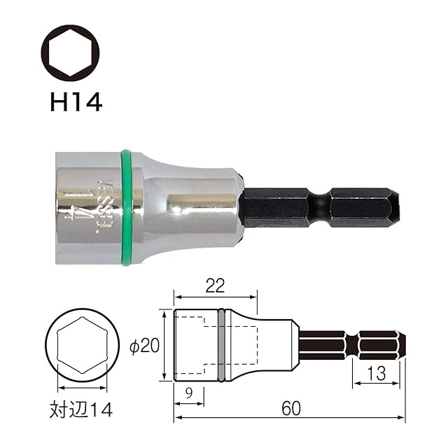 【特長】<br>●配管・配線支持金具取り付け他、六角ボルトナット締め付けに適しています。<br>●特許・軸部圧入式構造でガタつき、軸抜けがありません。<br>●軸部とソケット部をそれぞれ最適な硬度で熱処理しているのでねじれに強い特性があります。<br><br>【用途】<br>●配管・配線支持金具取り付け他、六角ボルトナット締め付けに。<br><br>【使用】<br>●対辺寸法(mm):14.0<br>●軸寸法(mm):6.35<br>●全長(mm):60<br>●質量(g):48<br><br>【材質/仕上】<br><br>【セット内容/付属品】<br><br>【注意】