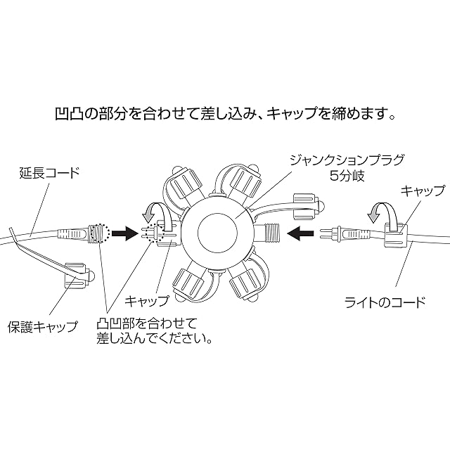 凹凸を合わせてプラグを差し込み、キャップを回すだけで接続完了。特別な技術、資格は不要。