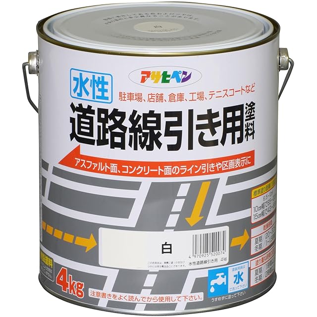 アサヒペン 塗料 ペンキ 水性道路線引き用塗料 4kg 白 水性 道路 ライン引き アスファルト コンクリート 艶消し 1回塗り 滑り止め効果 速乾 耐摩耗性 耐候性 日本製 | emishop315