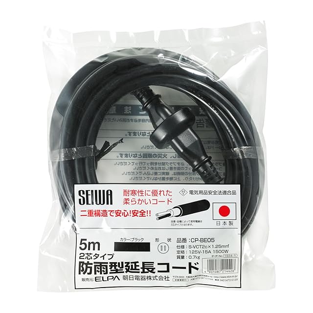 商品名:エルパ (ELPA) 延長コード コンセント 屋外 安全 防雨 5m 耐寒性 125V 15A CP-BE05