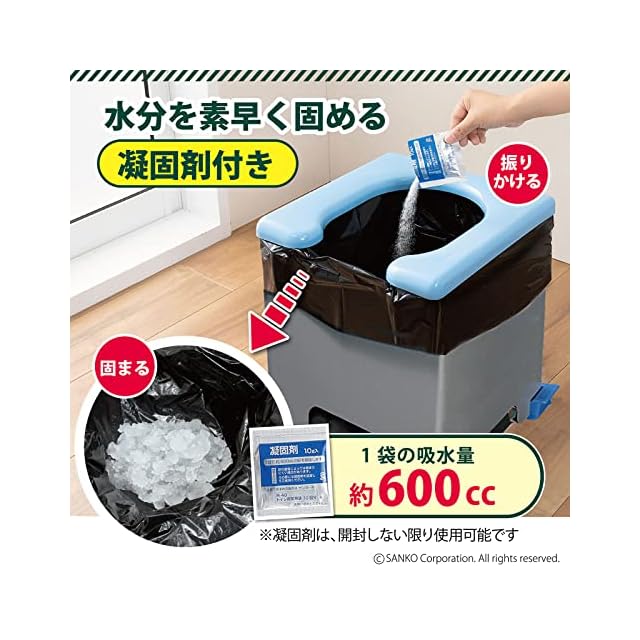 【凝固剤】約600ccの水分を固める。開封しない限り使用可能(高温多湿の場所では保管しないでください)