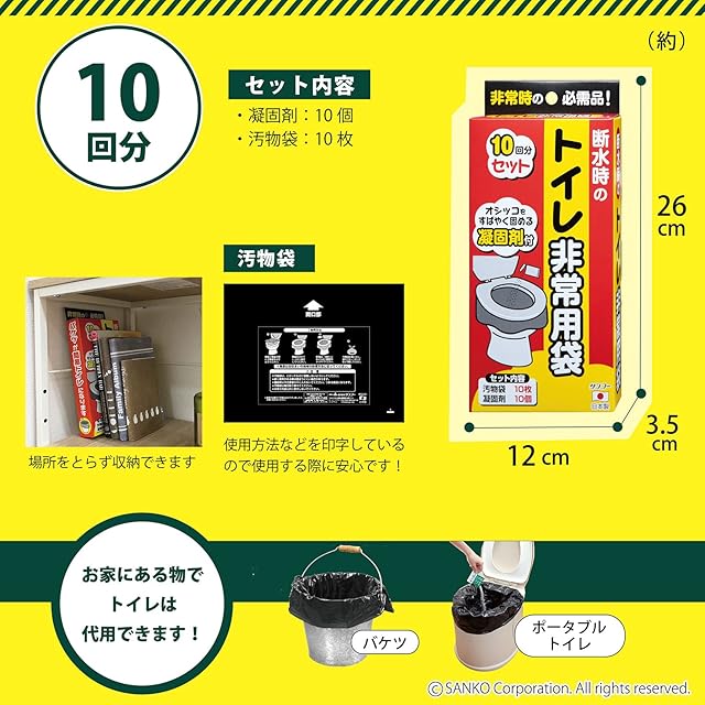 商品名:サンコー 非常用 災害用 簡易トイレ 旅行 キャンプ 備蓄 携帯 防災 日本製 取替用【排泄処理袋 凝固剤 10回分】長期保存 Rー40