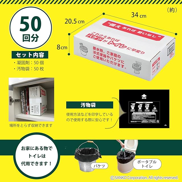 商品名:サンコー 非常用 災害用 簡易トイレ 旅行 キャンプ 備蓄 携帯 防災 日本製 取替用【排泄処理袋 凝固剤 50回分】長期保存 R-48