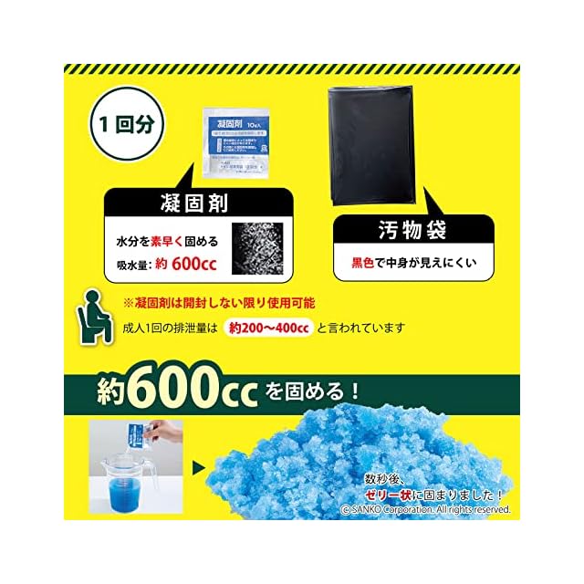 【凝固剤:10g】約600ccの水分を固める。開封しない限り使用可能(高温多湿の場所では保管しないでください)