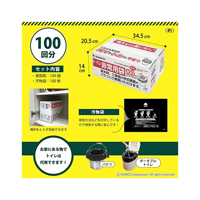 商品名:サンコー 非常用 災害用 簡易トイレ 旅行 キャンプ 備蓄 携帯 防災 日本製 取替用【排泄処理袋 凝固剤付 100回分】長期保存 RB-06