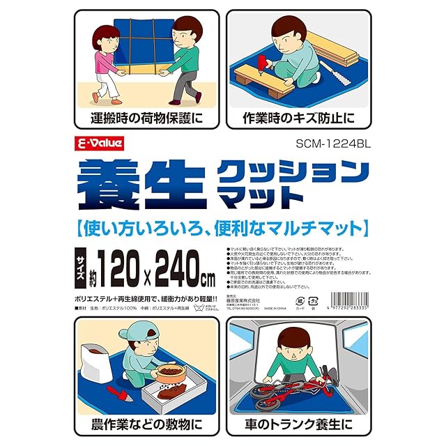 商品名:イーバリュー(E-Value) 養生クッションマット 約120×240cm 農作業の敷物や車のトランク養生にも SCM-1224BL