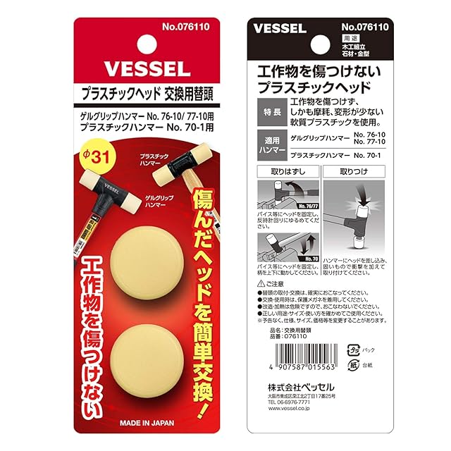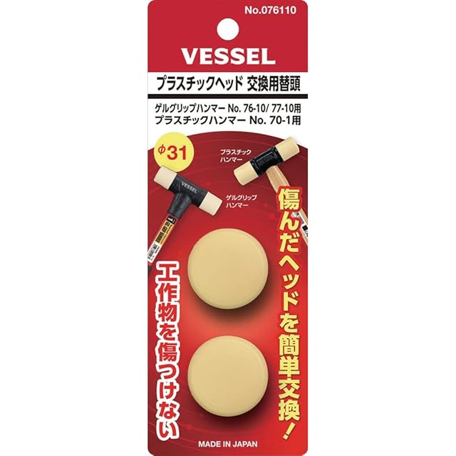商品名:ベッセル(VESSEL) プラスチックヘッド 交換用替頭 Φ31 76-10/77-10・70-1用 2個入 076110