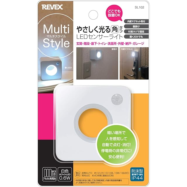 商品名:リーベックス(Revex) LED センサー ライト ミニ 電池式 防雨型人感センサー マグネット付き 防犯 角型 ホワイト SL102