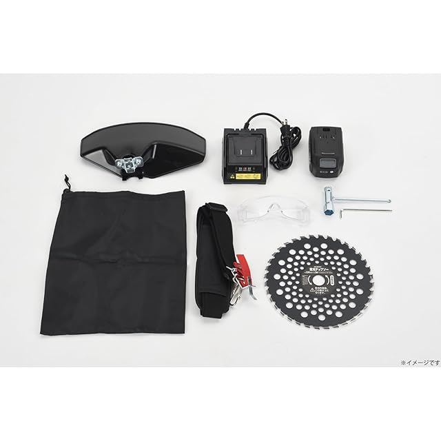 【セット内容】ギア・ブラシレス静音刈払機ハンドル部×1 、ギア・ブラシレス静音刈払機先端部×1、18V専用バッテリーパック(4.0Ah)×1、18V専用充電器×1 、左手用ハンドル×1、飛散防護カバー(飛散防護カバー取付けねじ・飛散防護カバー取付け金具、出荷時本体取付け済)×1、チップソー外径230mm×36P(内径φ25.4mm・板厚1.3mm)×1、肩掛けベルト×1、コンビボックススパナ×1、六角棒レンチ(4mm)×1、保護めがね×1、収納袋×1、取扱説明書×1