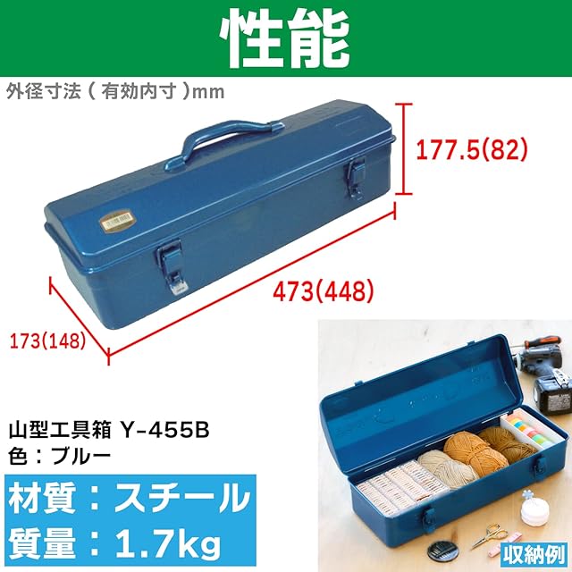 商品名:トラスコ中山(TRUSCO) 山型工具箱 ブルー 473×173×177.5mm Y-455-B