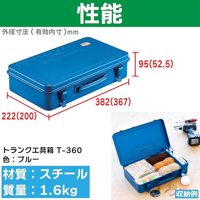 商品名:トラスコ中山(TRUSCO) トランク工具箱 ブルー 368×222×95mm T-360