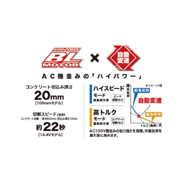 AC機並みのハイパワー。ハイパワーブラシレスモータ+自動モード切替搭載。軽負荷時ハイスピードモード、高負荷時高トルクモードに自動変速。※ダイヤル5の場合のみ