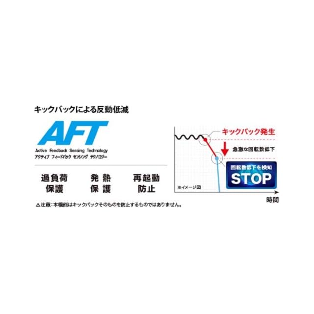 キックバック低減機能。キックバック時の急激な回転数低下を検知して自動停止。