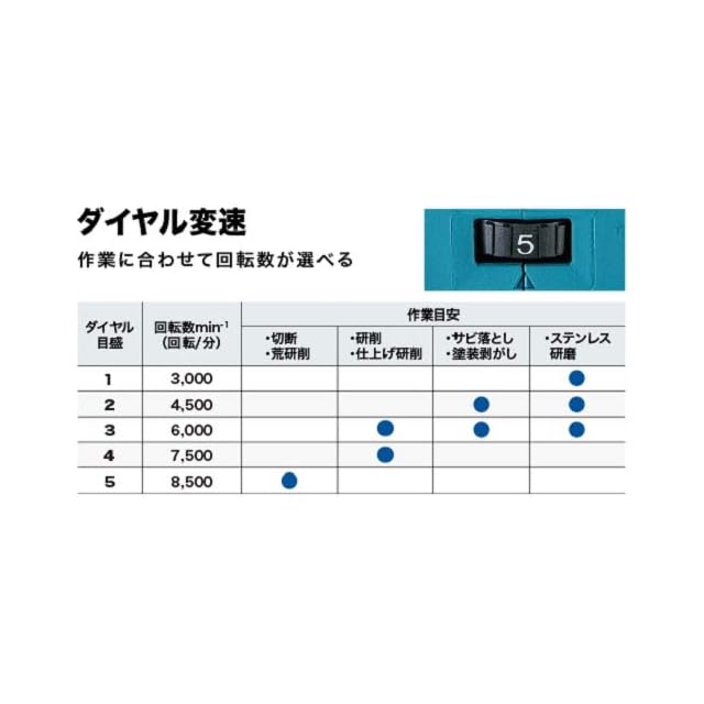 回転数:3,000~8,500回転/分(ダイヤル5段階変速)