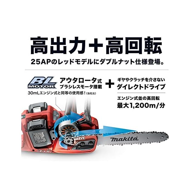 商品名:マキタ 充電式チェンソー ガイドバー350mm 赤 36V 6Ahバッテリ2本・充電器付 MUC355DGFR