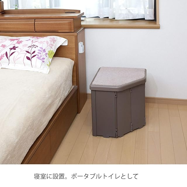 普段は腰掛け、非常時はトイレになる簡易トイレです。コーナー部分に設置できる仕様です。