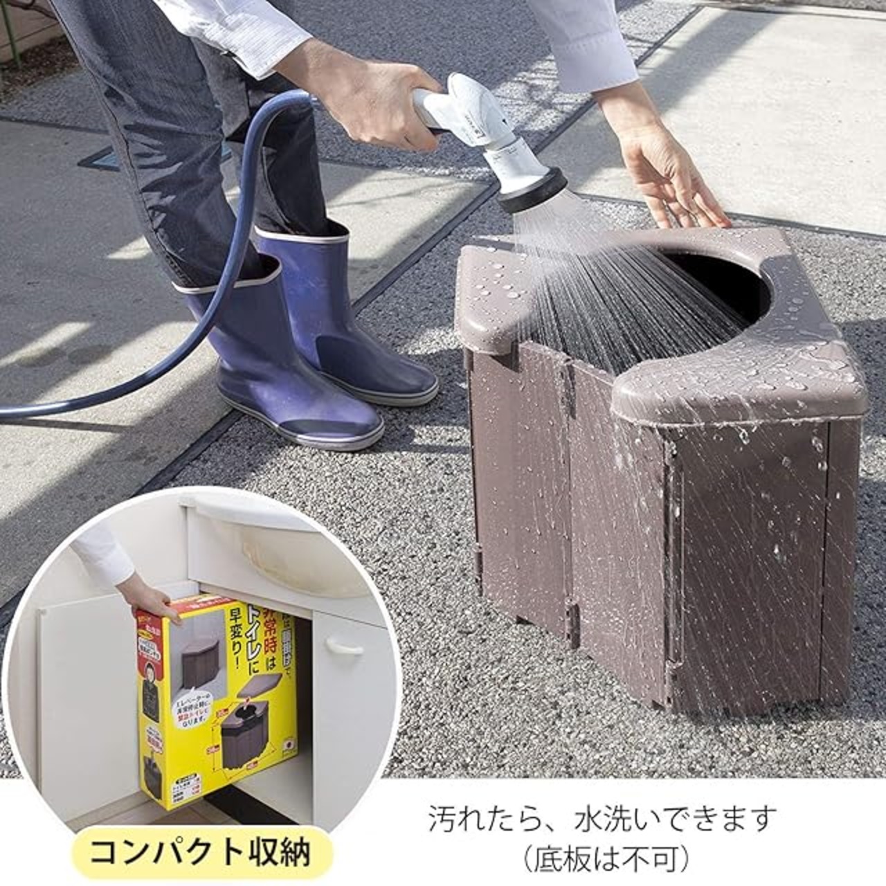 フタ付きで、災害時や断水などの非常時以外にも、エレベーターやアウトドア、ポータブルトイレとしても役立ちます。