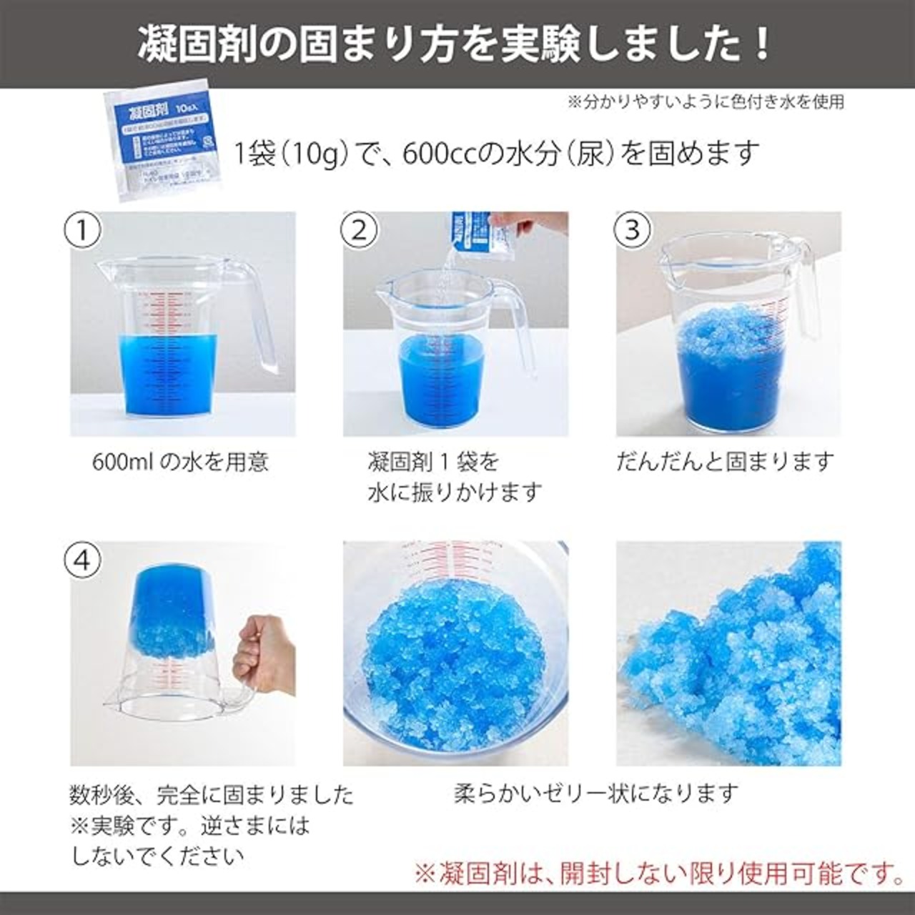 【凝固剤】約600ccの水分を固める。開封しない限り使用可能(高温多湿の場所では保管しないでください)