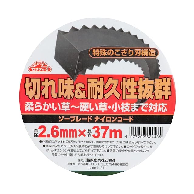 商品名:セフティー3(Safety-3) ソーブレード ナイロンコード 特殊のこぎり刃構造 直径2.6mm×37m
