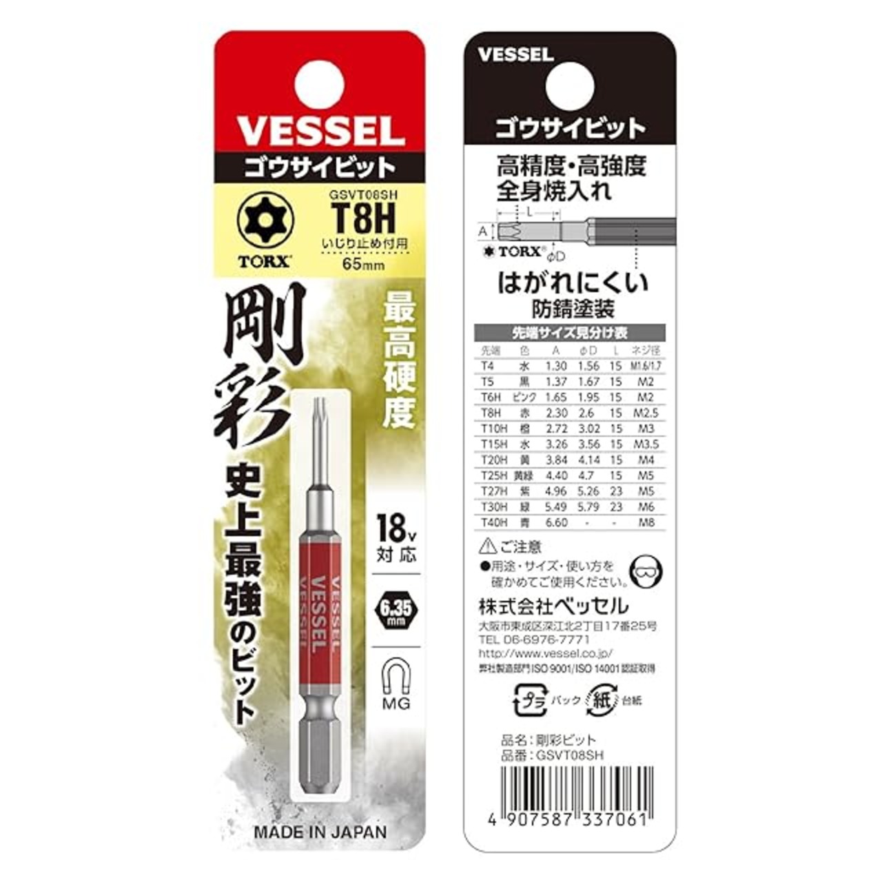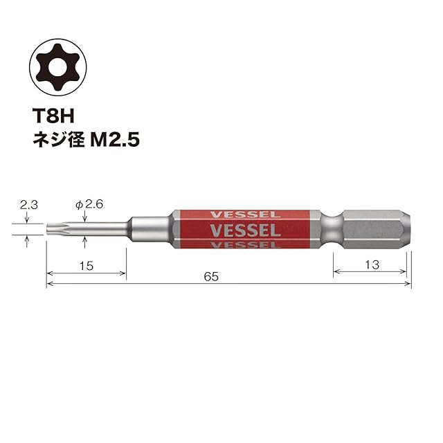 商品名:ベッセル(VESSEL) 片頭トルクス 剛彩ビット T8H×65 1本 GSVT08SH