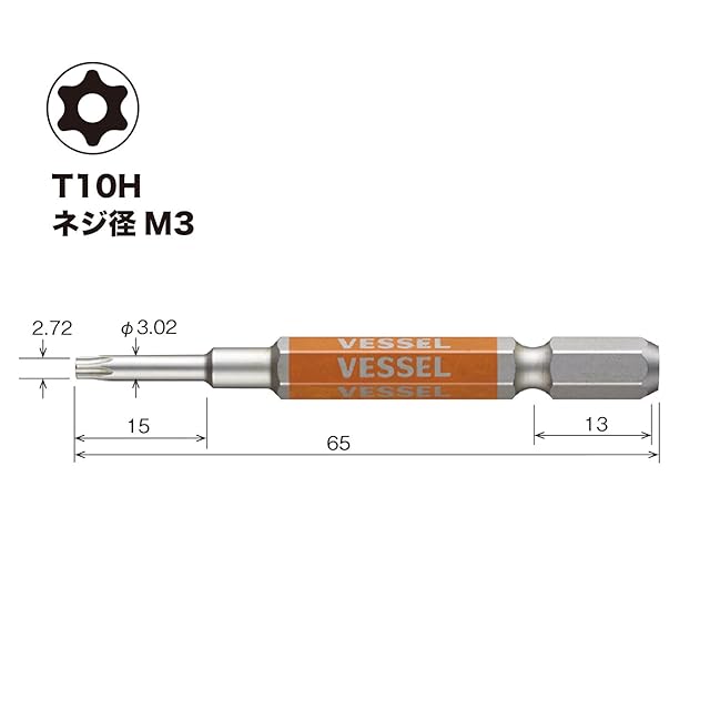 商品名:ベッセル(VESSEL) 片頭トルクス 剛彩ビット T10H×65 1本 GSVT10SH
