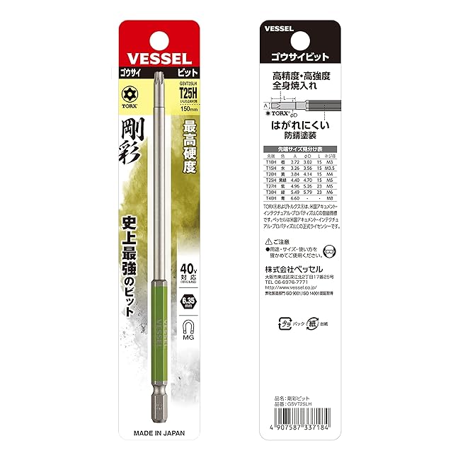 商品名:ベッセル(VESSEL) 40V対応 片頭トルクス 剛彩ビット ロングタイプ T25H×150 1本 GSVT25LH