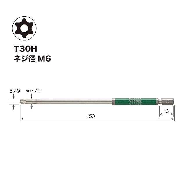 商品名:ベッセル(VESSEL) 片頭トルクス 剛彩ビット ロングタイプ T30H×150 1本組 GSVT30LH