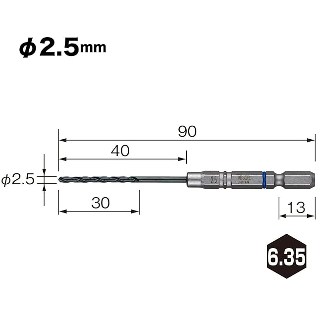セット内容:φ2.5×90mm…6本 刃先部:高硬度HSS(ハイス鋼) 本体:特殊鋼 クッションリング:青 日本製
