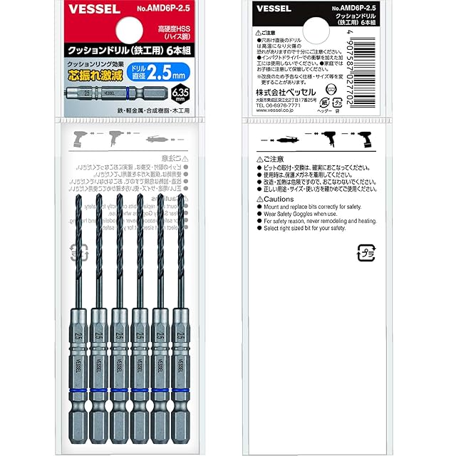 商品名:ベッセル(VESSEL) クッションドリル6本組<鉄工用> ドリルビット2.5mm AMD6P-2.5(金属・金工) クッションリング:青