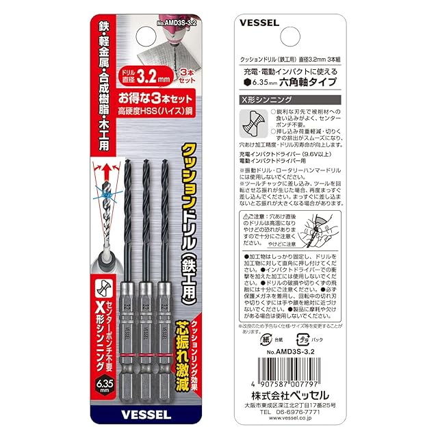 商品名:ベッセル(VESSEL) クッションドリル <鉄工用> ドリルビットセット Φ3.2mm 3本組 AMD3S-3.2