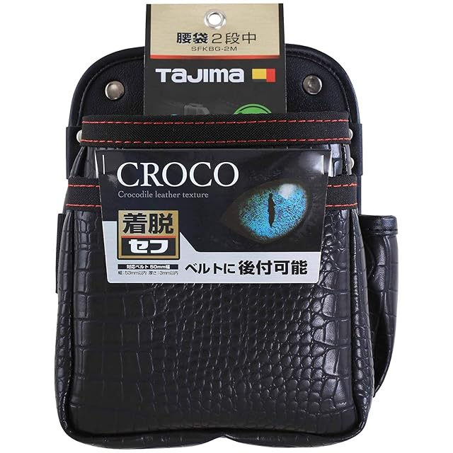 商品名:タジマ セフシステム 着脱式腰袋 クロコ 2段中 高強度でしなやかな高耐久合成皮革 SFKBG-2M 着脱楽々 ベルトに後から装着可能 腰道具の組み換えが簡単 使う道具だけを選んで装着 腰の負担軽減 工具の落下防止