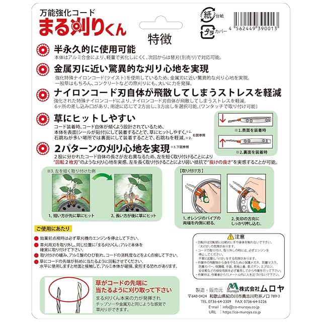商品名:ムロヤ 万能ブラシ草刈り刃 万能強化コード まる刈りくん プロ用強化特殊ナイロンコード使用 (本体) GBV1