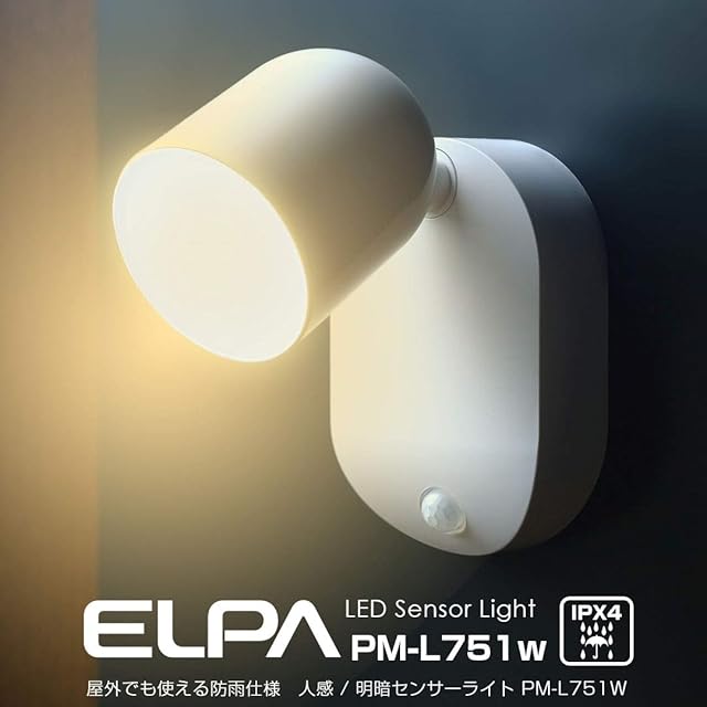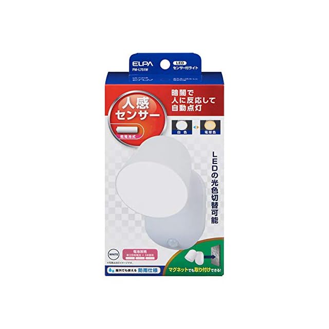 商品名:エルパ (ELPA) LEDセンサー付ライト (白色/電池式/防雨) 人感センサー/マグネット/ネジ止め可能/モード切替 (PM-L751W)