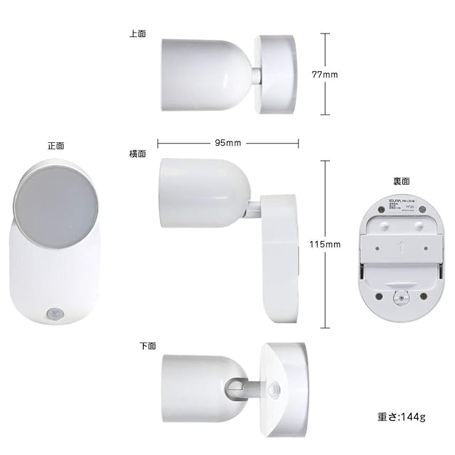 点灯保持時間:約12秒(人を検知すると自動で点灯し、約12秒後に自動で消灯します)点灯中に人を検知すると点灯時間が延長されます。 点灯開始照度:約1lx 使用温度範囲:10℃~40℃ 保護等級:ipx4(防沫形)