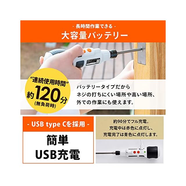 付属品:USBケーブル(TypeA-TypeC/約50cm)、ビット(+PH2:対辺6.35mm)