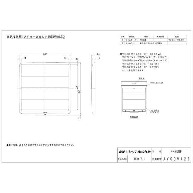 ("見出し:フィルター交換対応機種VFH-25UF・WF・RF・YF・HF・TF用")