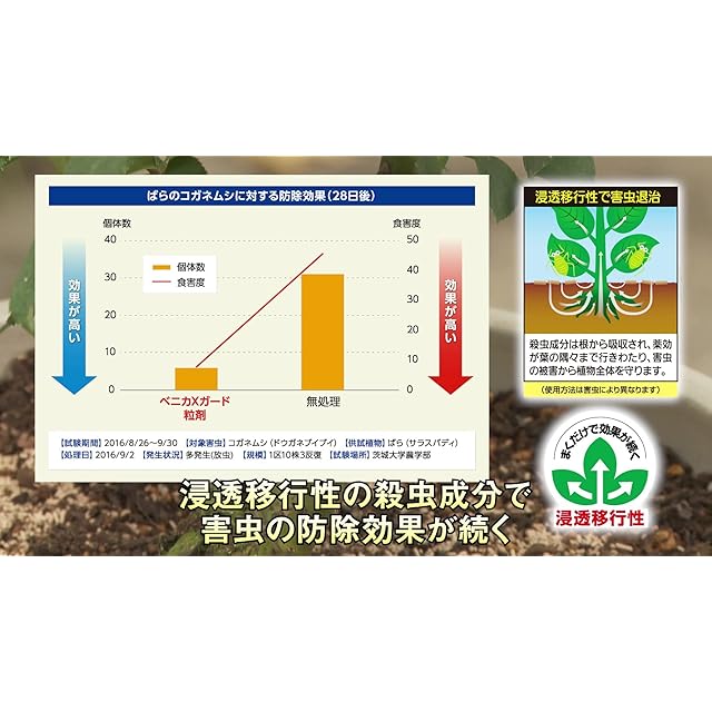 【有効成分】 クロチアニジン:0.10% BT[バチルスチューリンゲンシス菌の生芽胞及び産生結晶毒素(力価として1000B.m.E単位/mg)]:10.0%