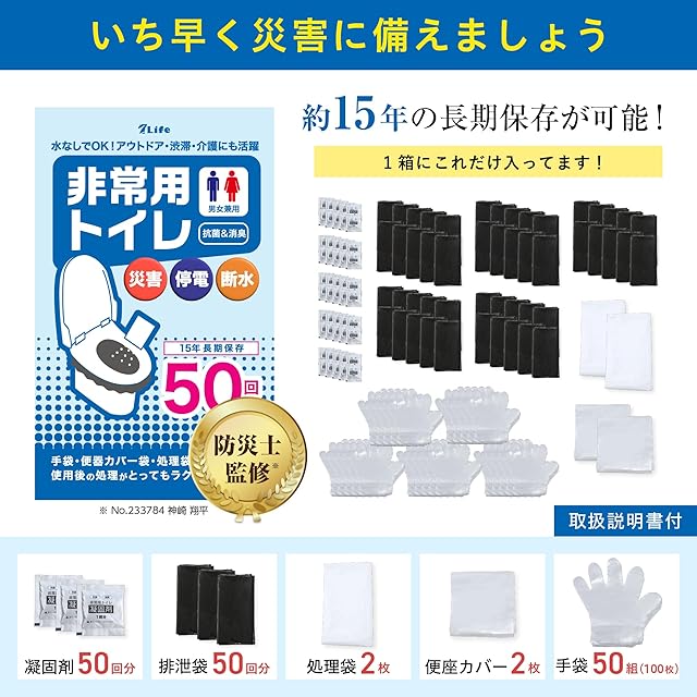 簡易トイレ 非常用トイレセット 防災用品 防災グッズ 防災セット 50回分 非常用簡易トイレ 仮設トイレ 手袋 防臭袋 ポータブルトイレ 大口対応 アウトドア 介護用 防災 携帯トイレ 台風 洪水 災害時 断水時 簡単使用 長期保存
