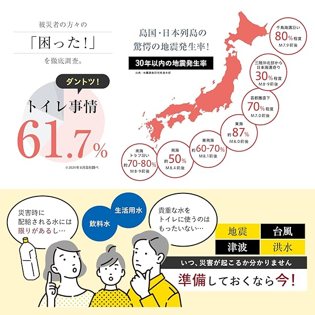 ✅【防災用 介護用 万が一の断水に備えて】緊急簡易トイレは急な断水工事でトイレが使えなくなったとき、地震や台風などの防災用品として、トイレが使えなくなった場合に重宝します。災害グッズ、防災用品、避難グッズとして備蓄しておくと安心です。携帯トイレは介護や怪我のとき、トイレにすぐにいけない場合にも活躍します。