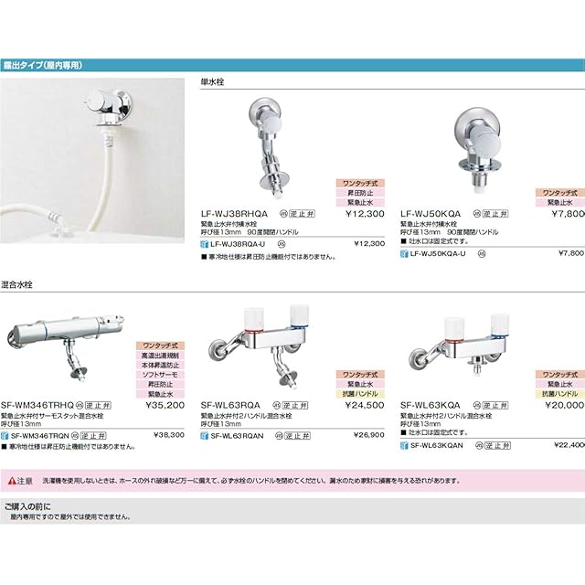 INAX LIXIL・リクシル 洗濯機用水栓金具 露出タイプ・埋込タイプ共通機能 露出タイプ(屋内専用)単水栓 逆止弁付【LF-WJ50KQA】